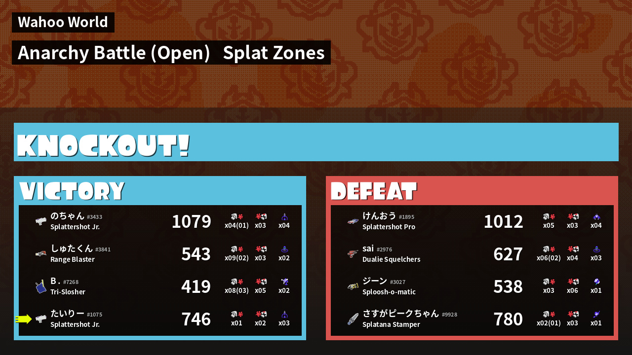 | Mode | Splat Zones - Anarchy Battle (Open) | ||