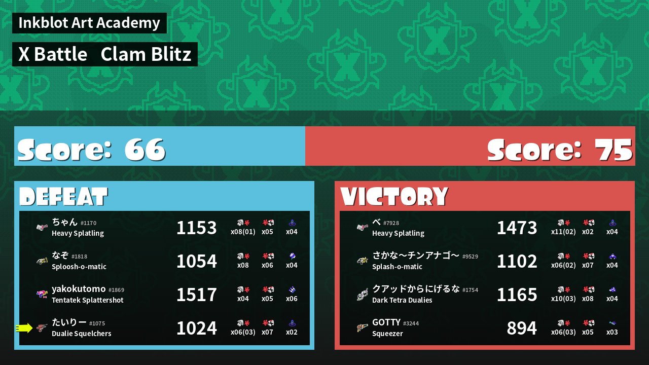 | Mode | Clam Blitz - X Battle | ||