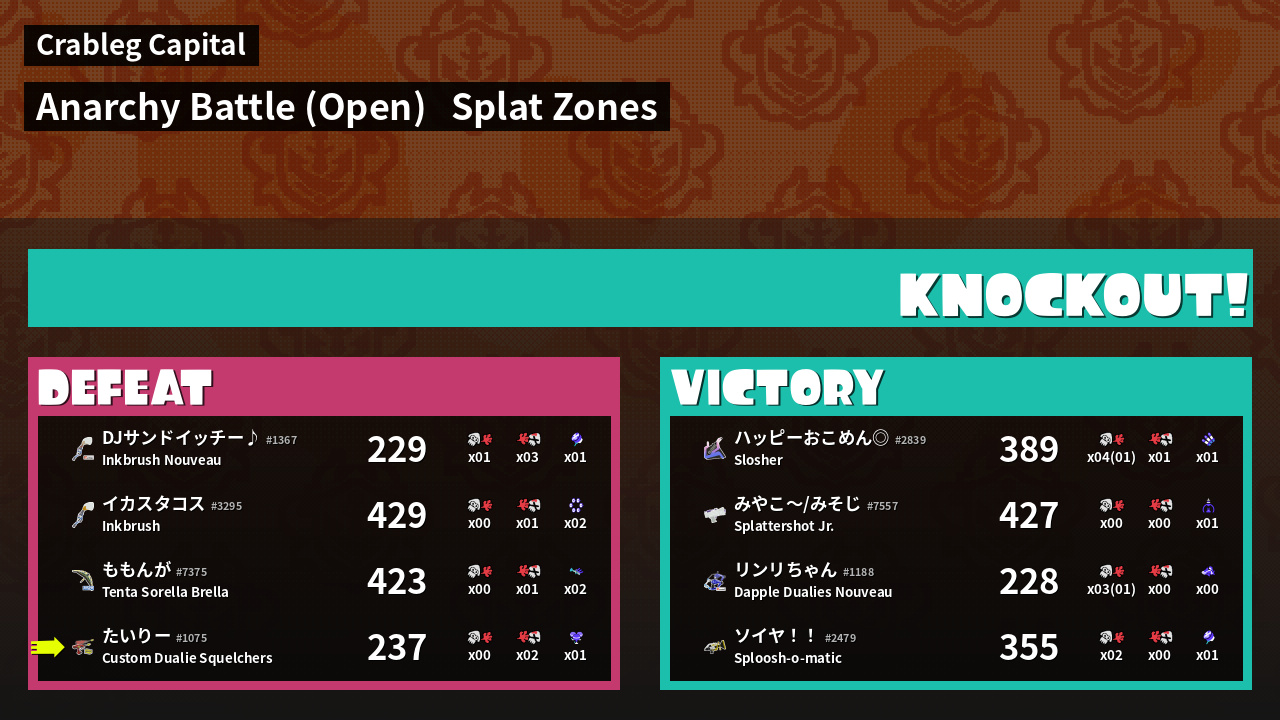 Name | Weapon | Inked | ![]() |