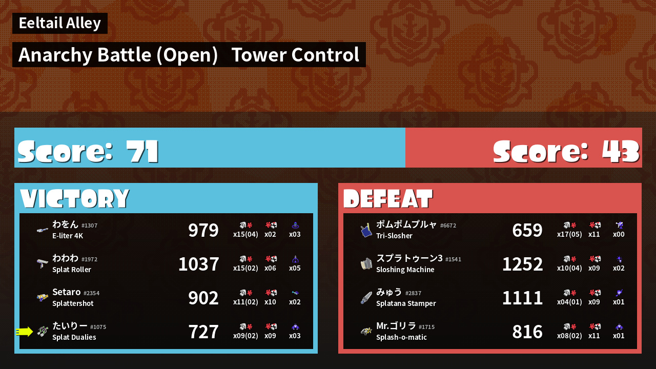 | Mode | Tower Control - Anarchy Battle (Open) | ||