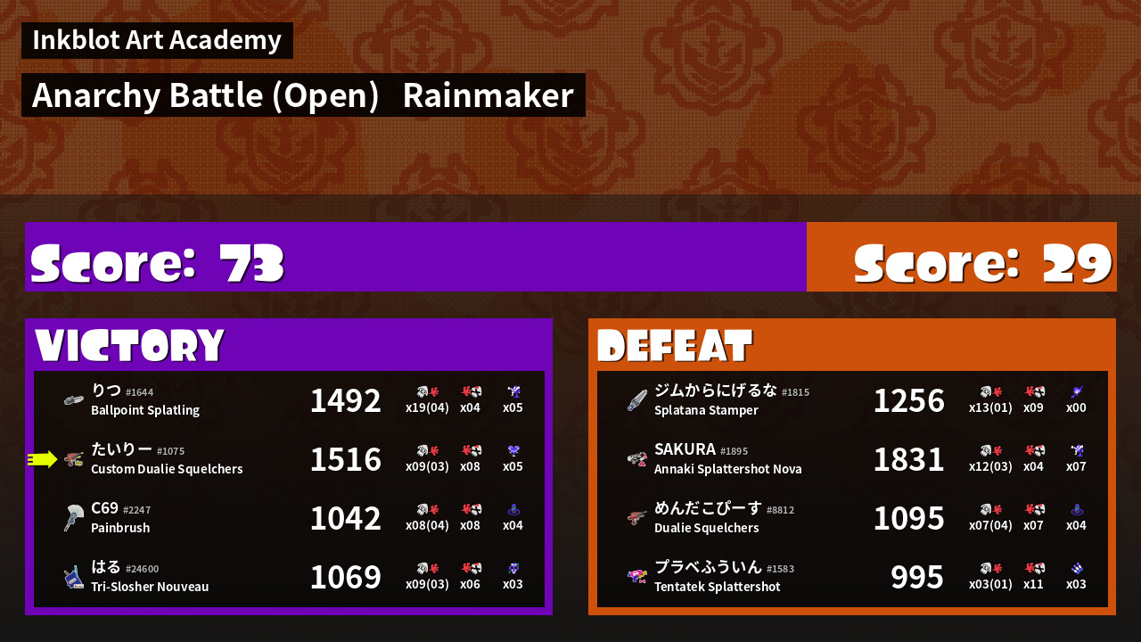 | Mode | Rainmaker - Anarchy Battle (Open) | ||