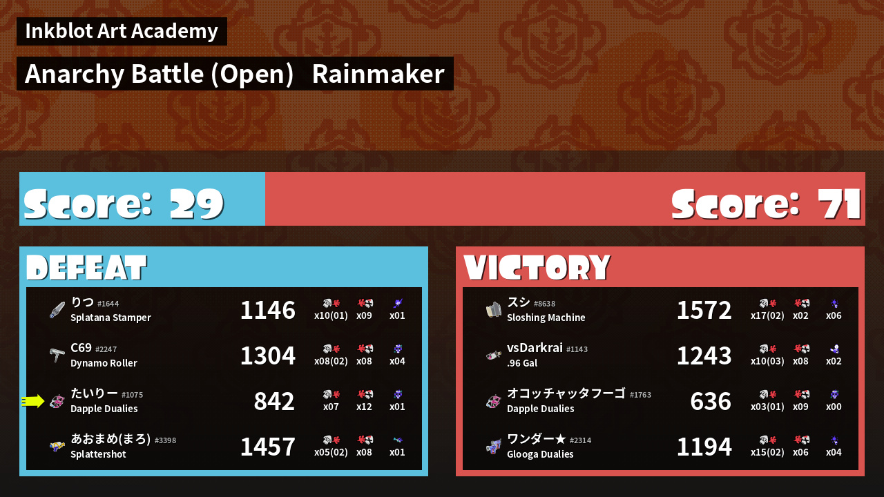 | Mode | Rainmaker - Anarchy Battle (Open) | ||