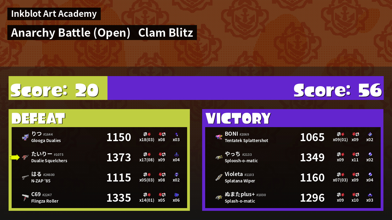 Name | Weapon | Inked | ![]() |