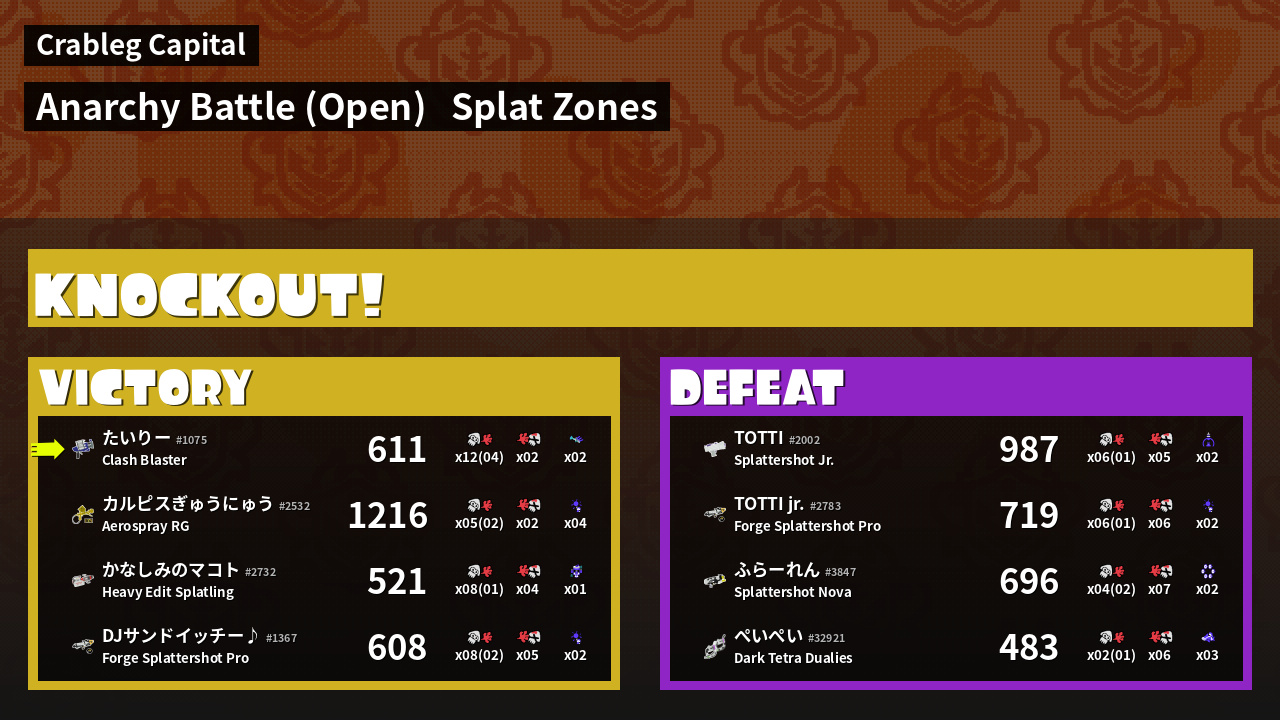 | Mode | Splat Zones - Anarchy Battle (Open) | ||