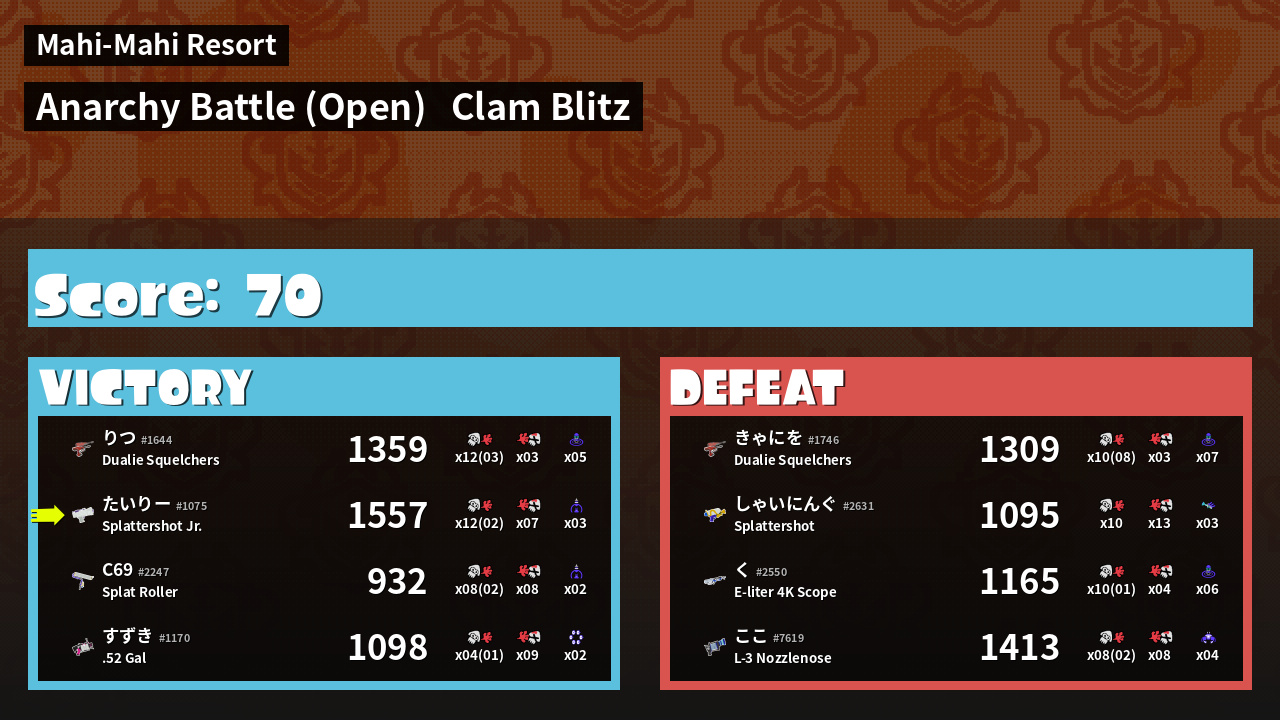 | Mode | Clam Blitz - Anarchy Battle (Open) | ||