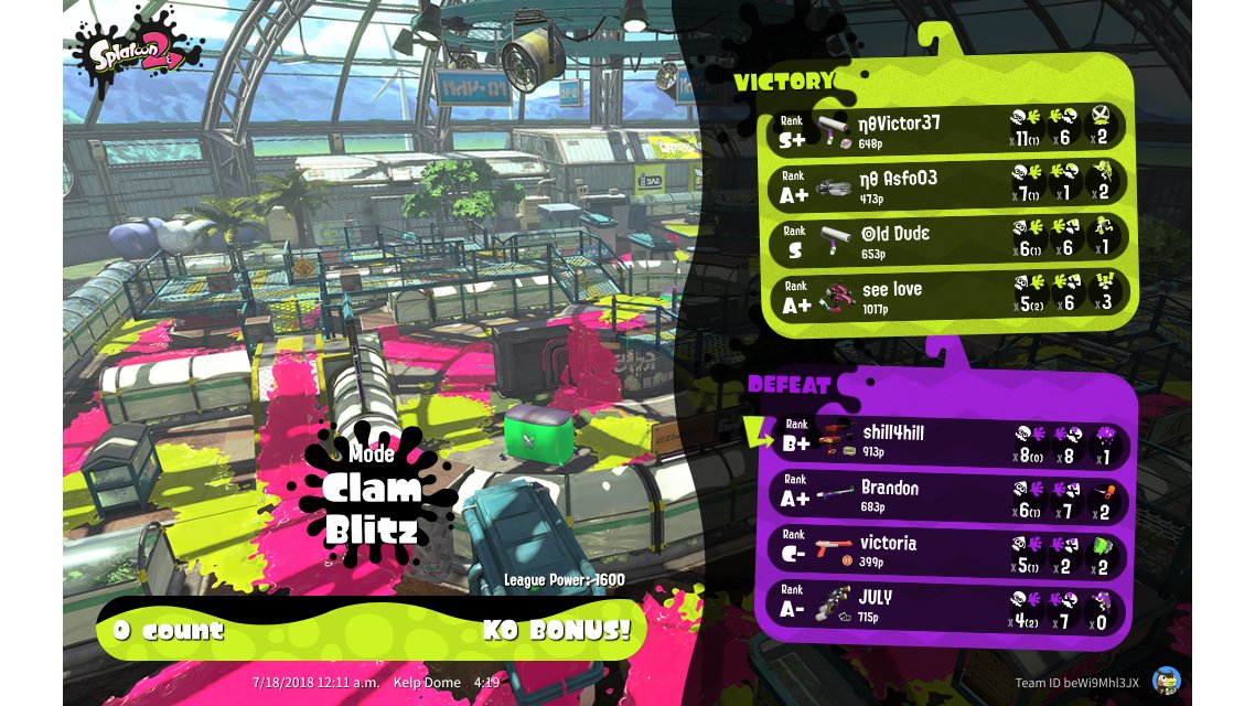 | Mode | Clam Blitz - League Battle (Twin) | ||||||||||||||||||||||||||||||||||