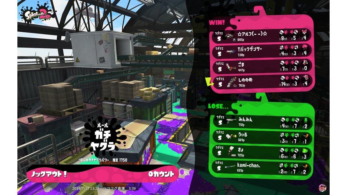 | Name | Weapon | Level | Rank | Inked | k+a/sp | k/d |
