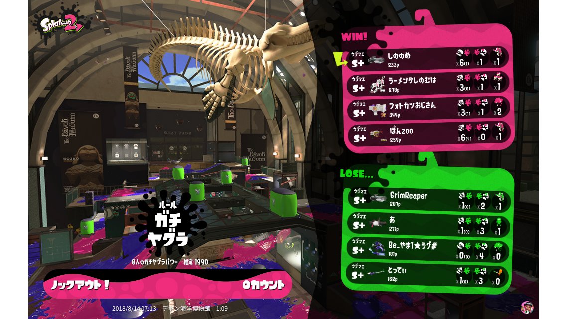 | Name | Weapon | Level | Rank | Inked | k+a/sp | k/d |