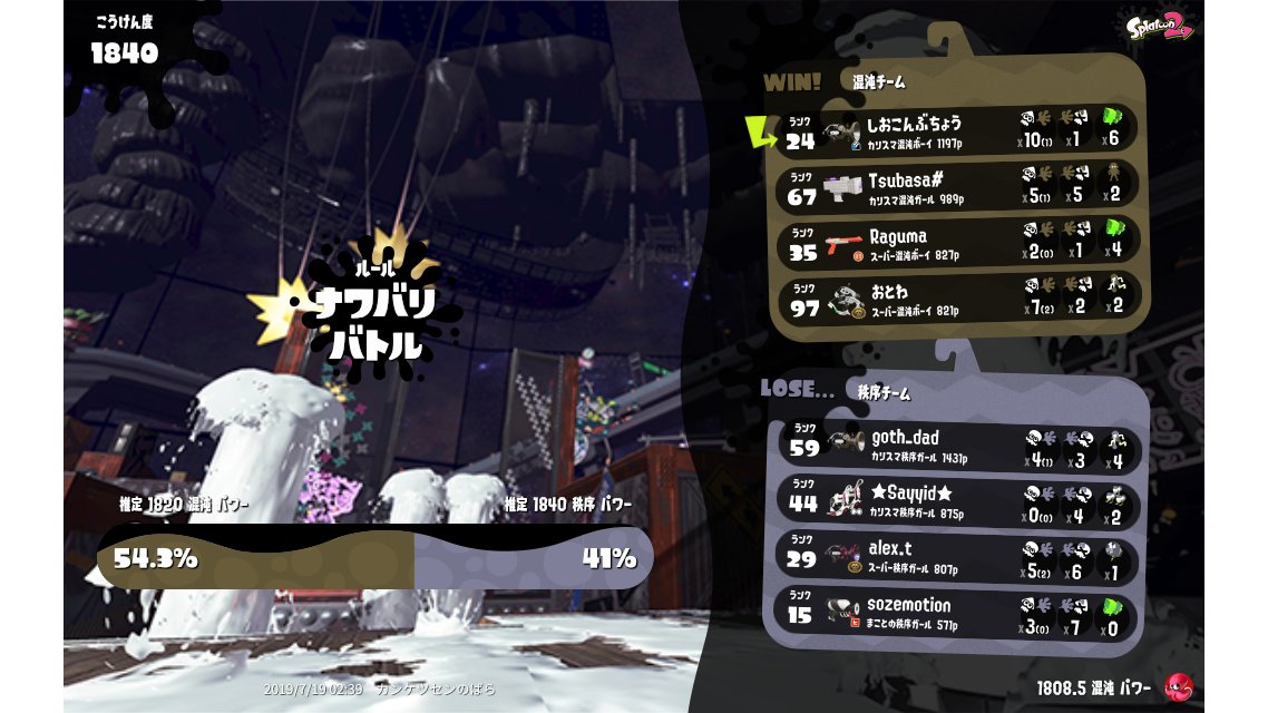 | Their team's splatfest power | 1,840 | ||||||||||||||||||||||||||||||||||