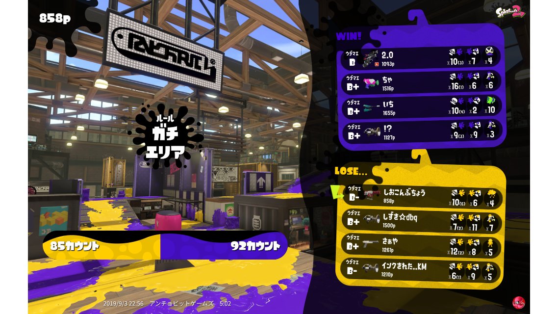 | Mode | Splat Zones - Ranked Battle | ||||||||||||||||||||||||||||||||||