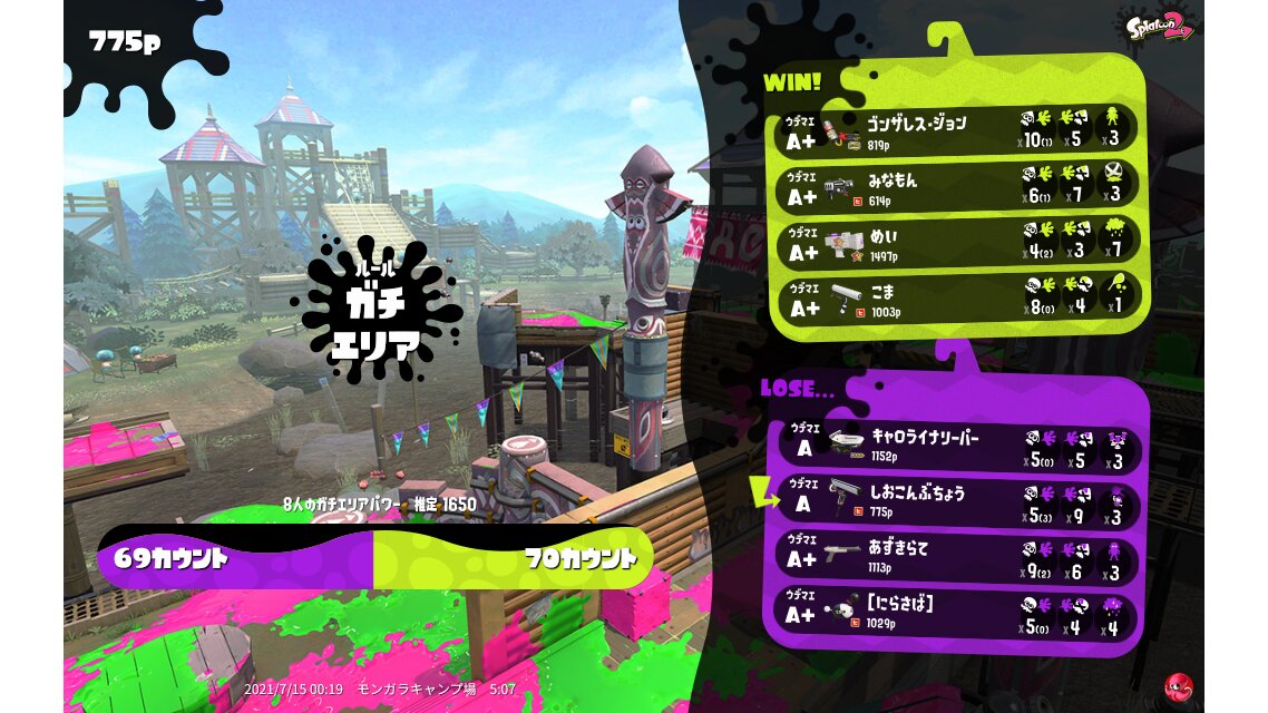 | Mode | Splat Zones - Ranked Battle | ||||||||||||||||||||||||||||||||||