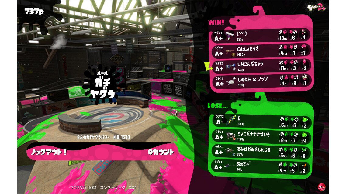 | Name | Weapon | Level | Rank | Inked | k+a/sp | k/d |