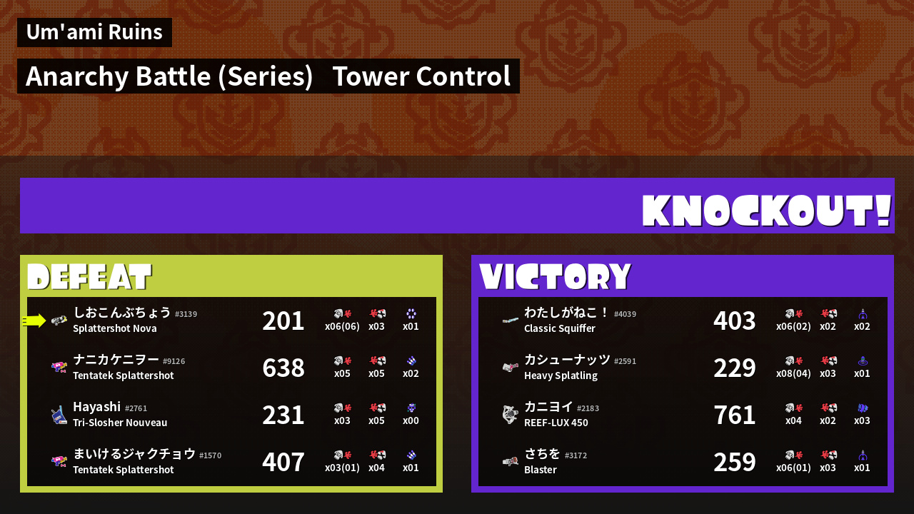 | 一万人に一人の選ばれし者 しおこんぶちょう #3139 |  Splattershot Nova                    | 201 | 0 + 6 | 3 | 0.00 |  1 | |