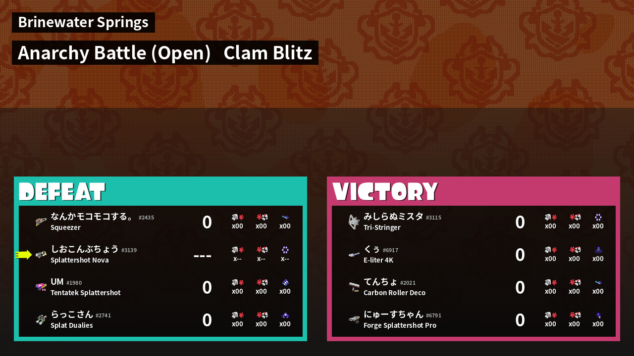 | Mode | Clam Blitz - Anarchy Battle (Open) | ||