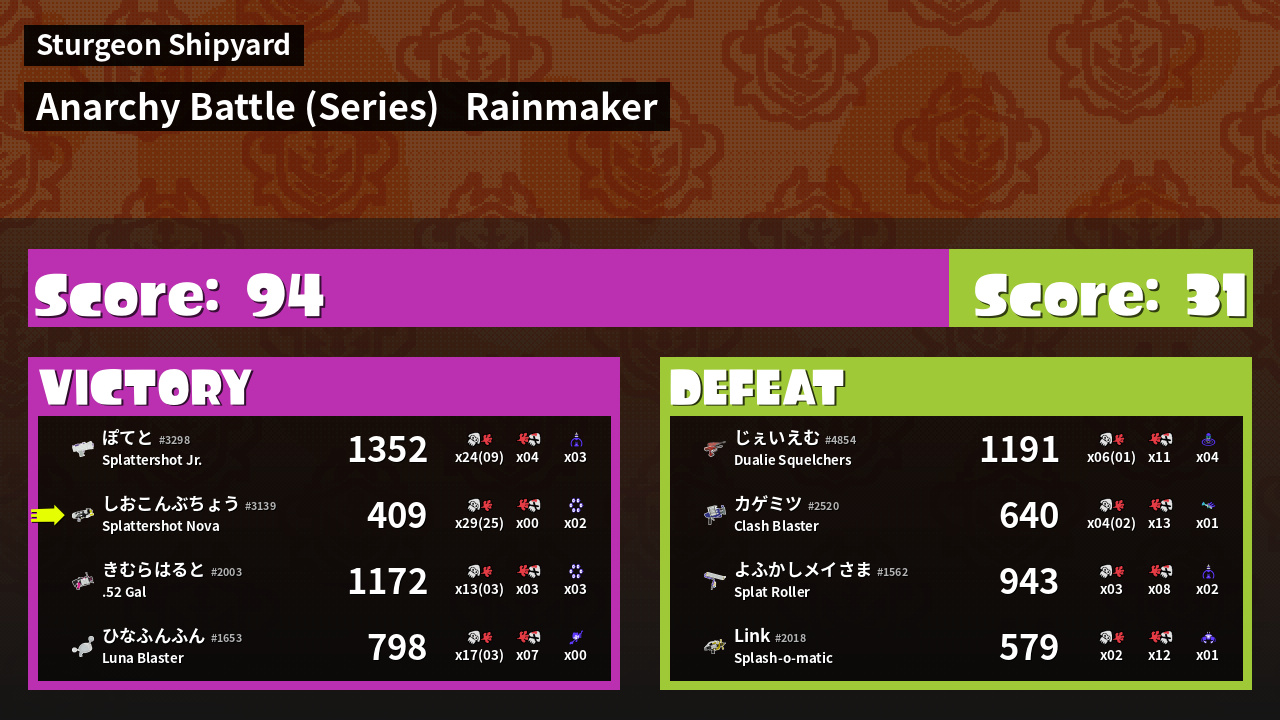 | Weapon | Splattershot Nova ( Point Sensor / Killer Wail 5.1) | ||