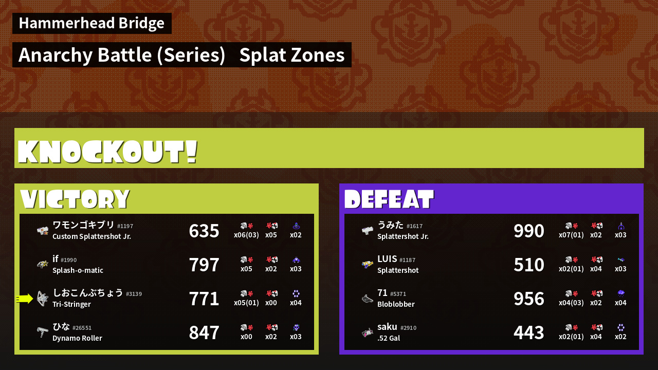 | Mode | Splat Zones - Anarchy Battle (Series) | ||
