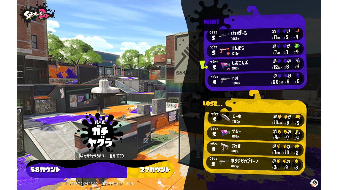 | Name | Weapon | Level | Rank | Inked | k+a/sp | k/d |