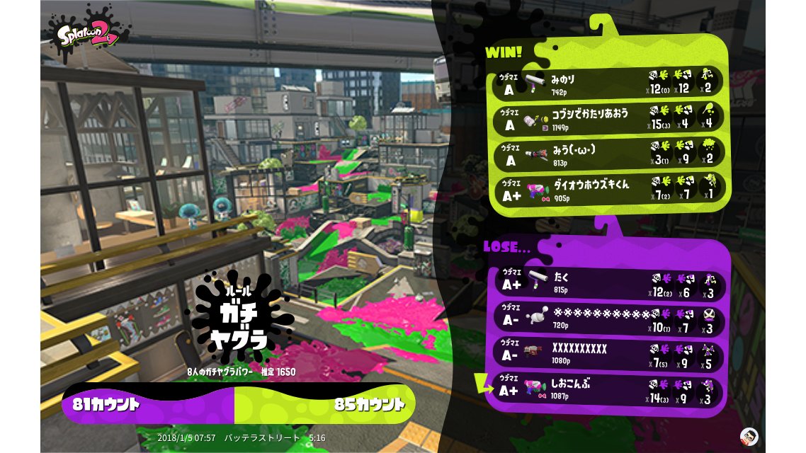 | SplatNet Battle # | 4,720 | ||||||||||||||||||||||||||||||||||