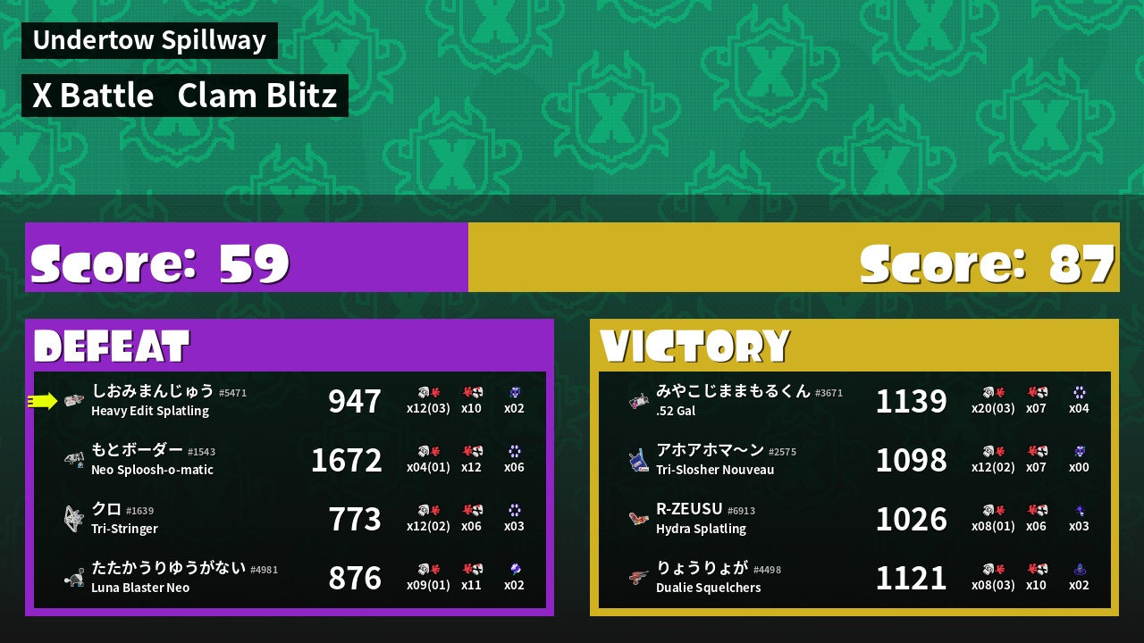 | Mode | Clam Blitz - X Battle | ||