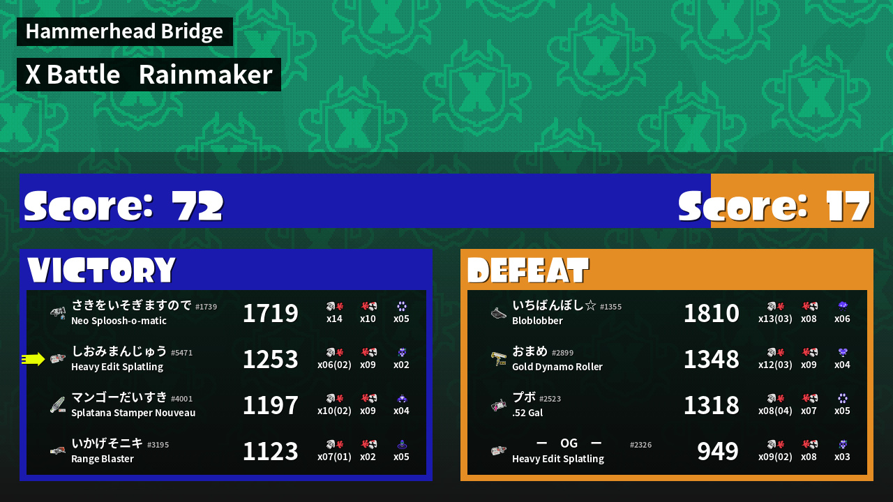 | Weapon | Heavy Edit Splatling ( Curling Bomb / Tacticooler) | ||