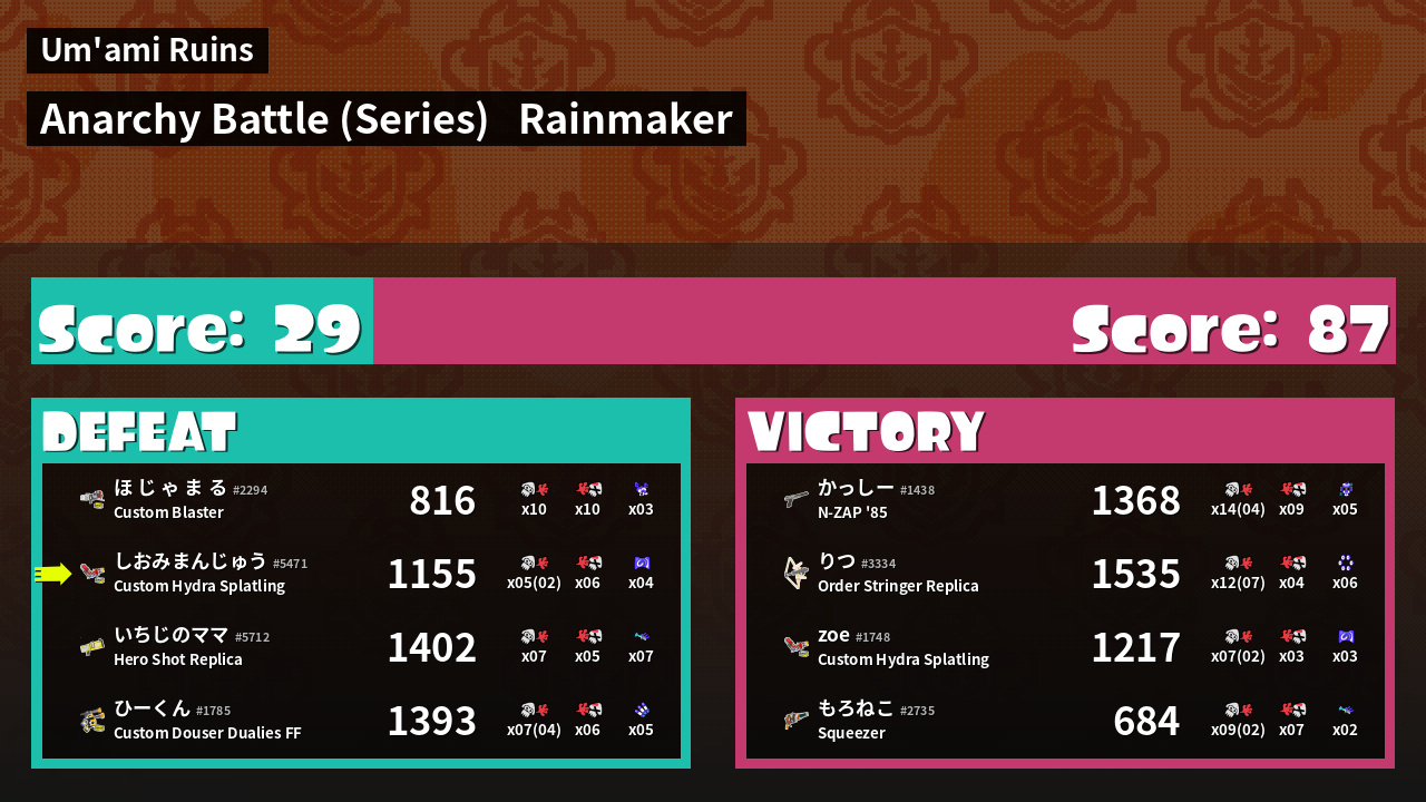 | Mode | Rainmaker - Anarchy Battle (Series) | ||