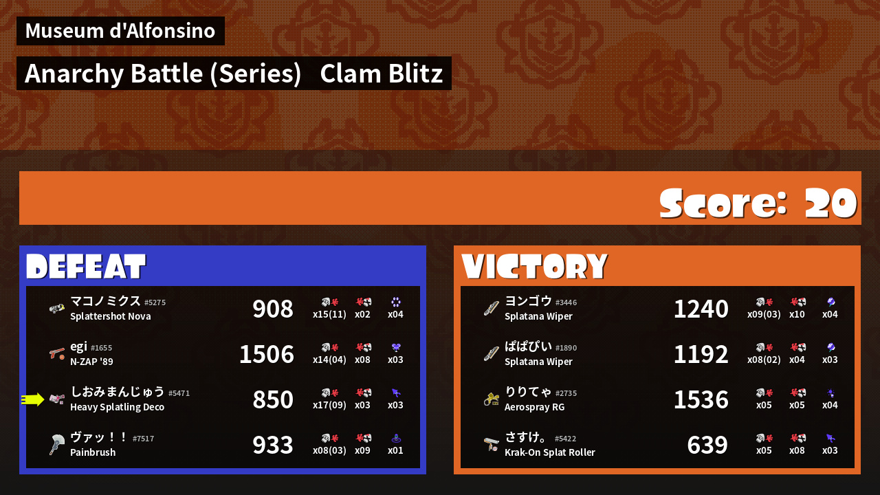 | Mode | Clam Blitz - Anarchy Battle (Series) | ||