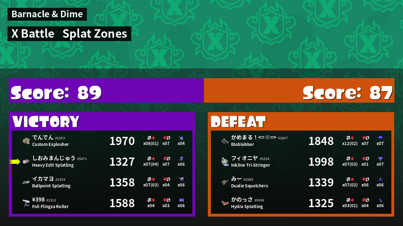 | Medals | #1 Splat Zone Guard #1 Super Jump Spot #1 Splat Assister | ||