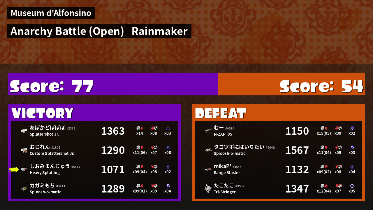 | Mode | Rainmaker - Anarchy Battle (Open) | ||