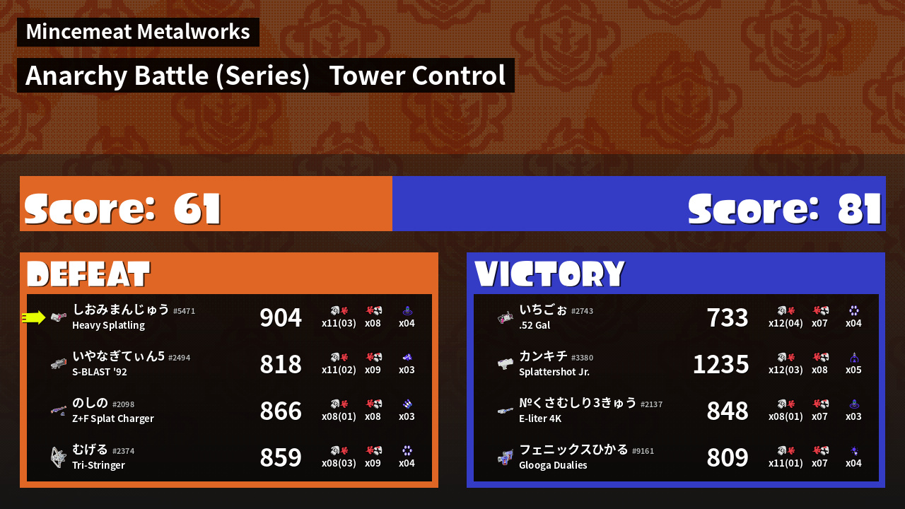 | Medals | #1 Overall Splatter #1 Turf Inker #1 Super Jump Spot | ||