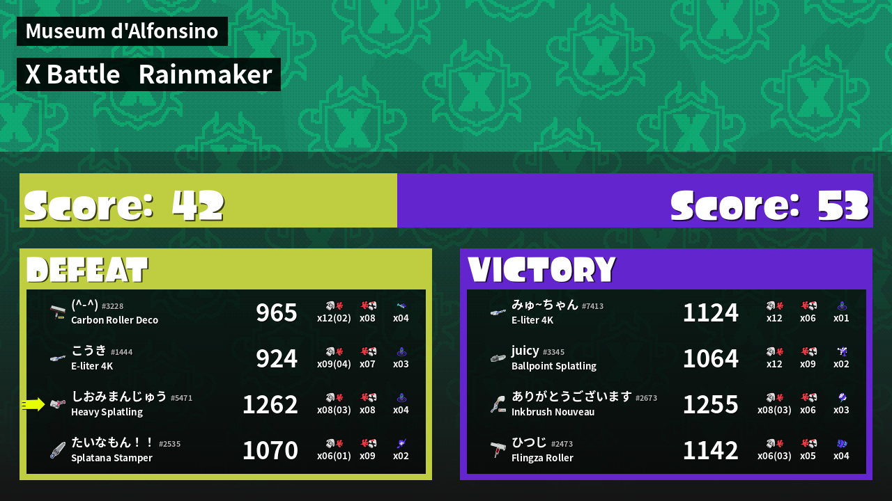 | Mode | Rainmaker - X Battle | ||