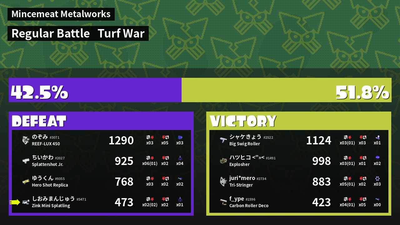 | Medals | #1 Super Jump Spot #1 Splat Assister #1 Ink Consumer | ||