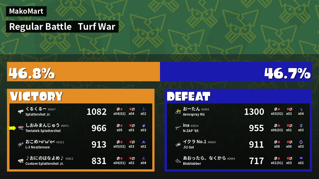 | Mode | Turf War - Regular Battle | ||
