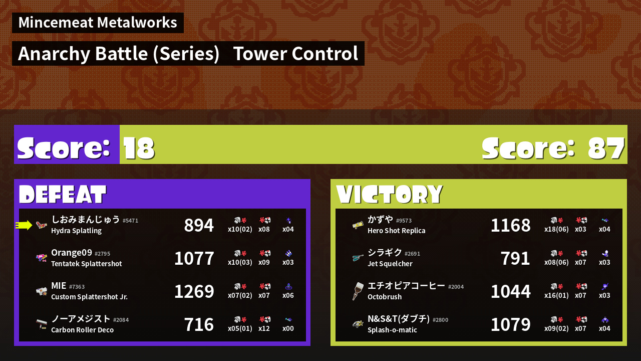 | Mode | Tower Control - Anarchy Battle (Series) | ||