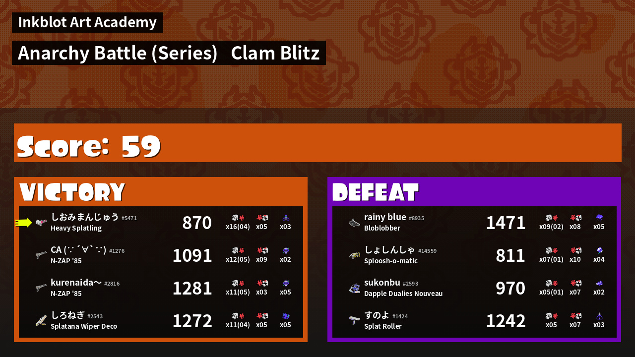 | Mode | Clam Blitz - Anarchy Battle (Series) | ||