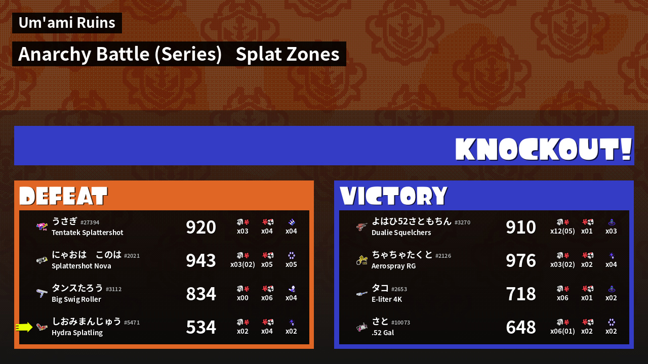 | Mode | Splat Zones - Anarchy Battle (Series) | ||