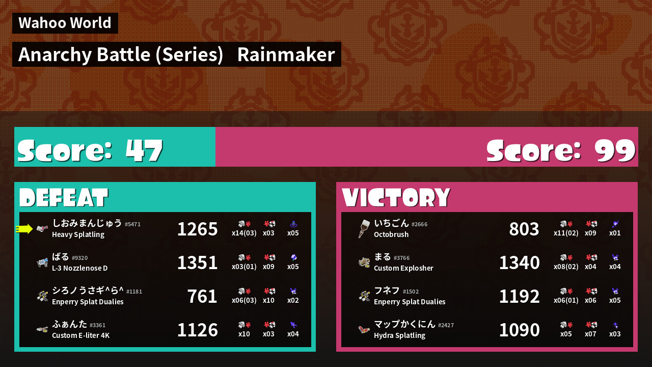 | Mode | Rainmaker - Anarchy Battle (Series) | ||
