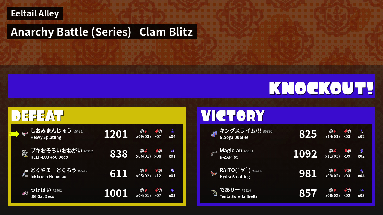 | Mode | Clam Blitz - Anarchy Battle (Series) | ||