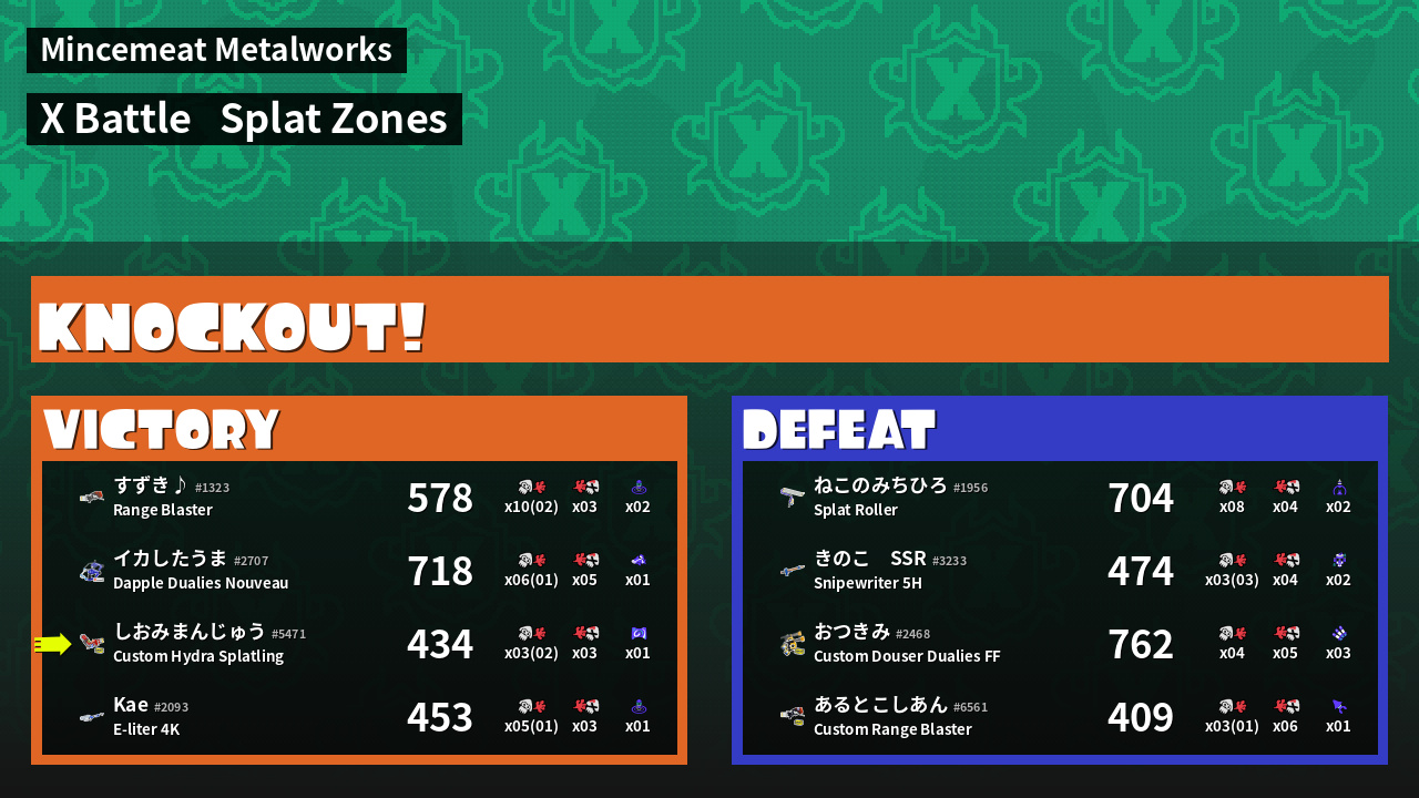 | Mode | Splat Zones - X Battle | ||