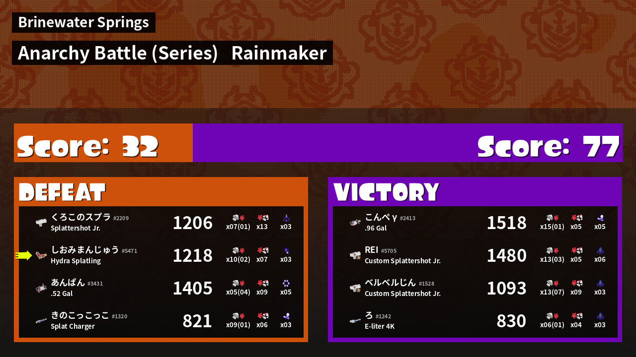| Medals | #1 Overall Splatter #1 Enemy Splatter #1 Rainmaker Carrier | ||