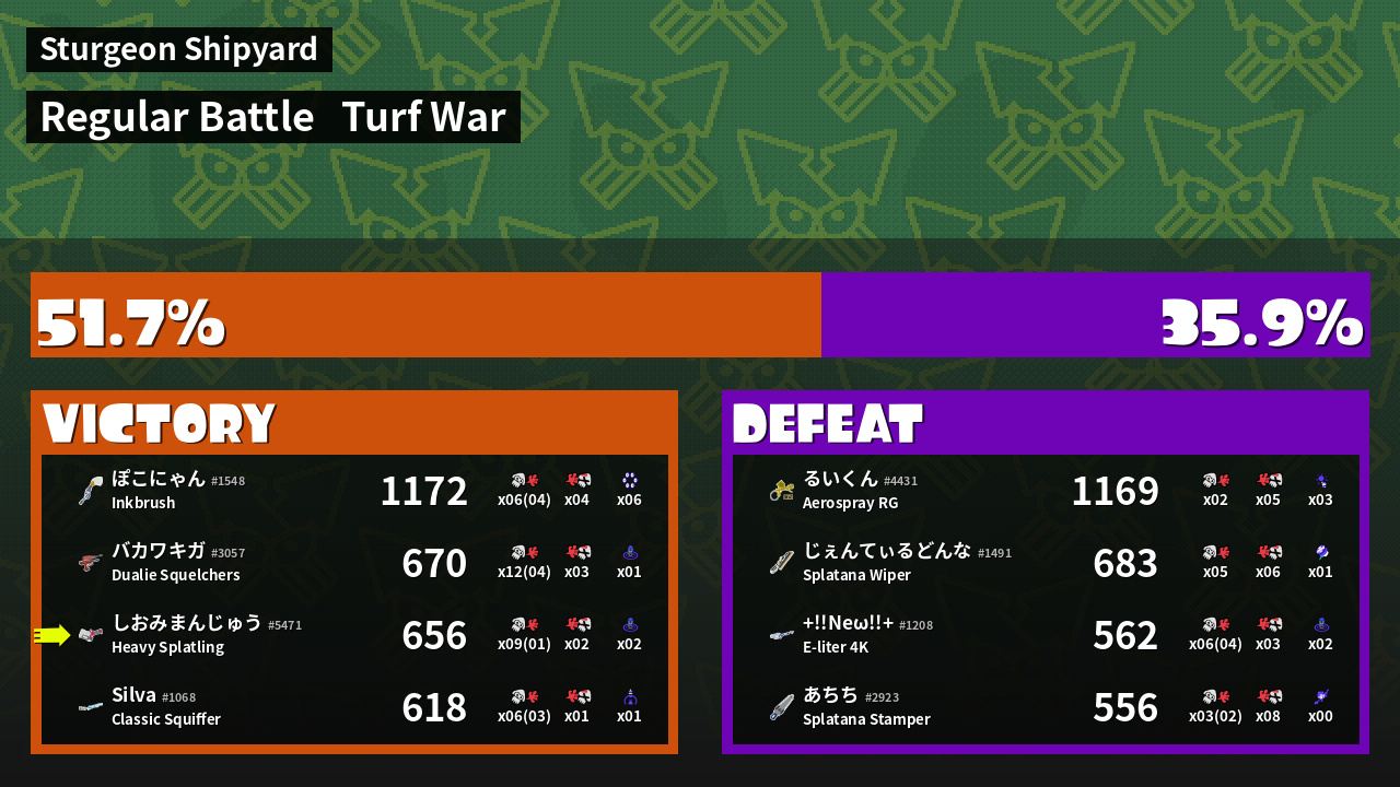 | Weapon | Heavy Splatling ( Sprinkler / Wave Breaker) | ||