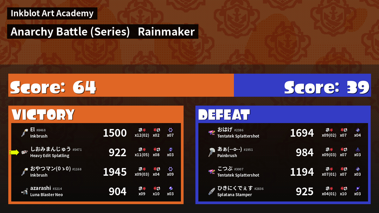 | Mode | Rainmaker - Anarchy Battle (Series) | ||