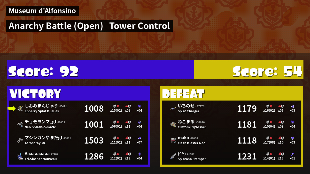 | Mode | Tower Control - Anarchy Battle (Open) | ||