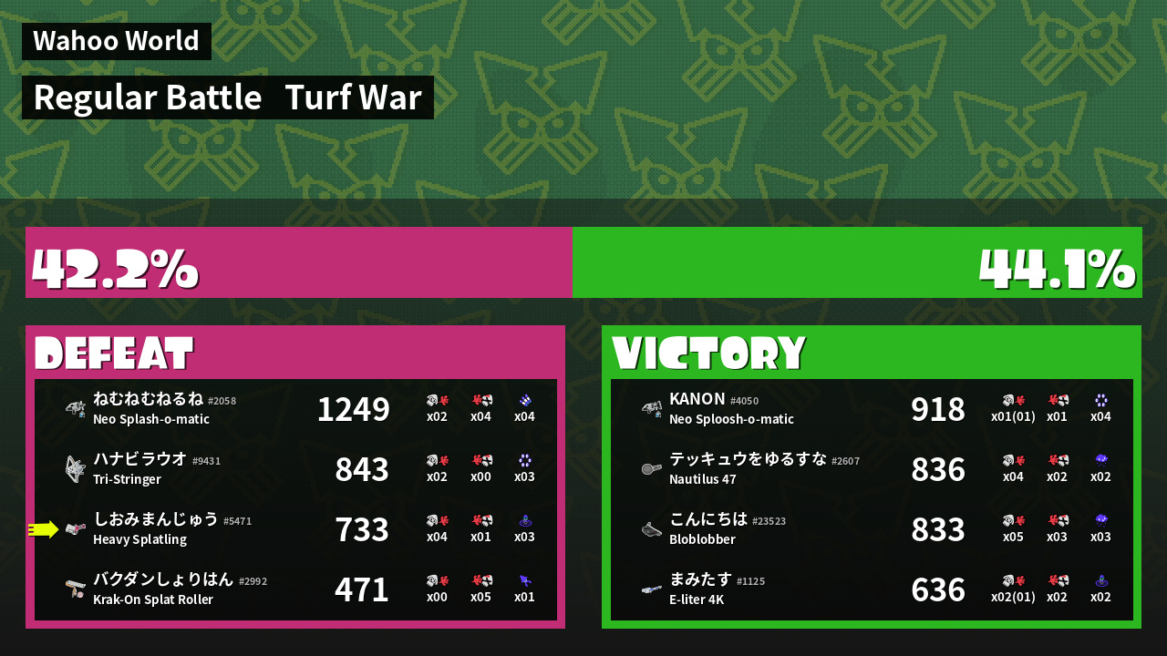 | Mode | Turf War - Regular Battle | ||