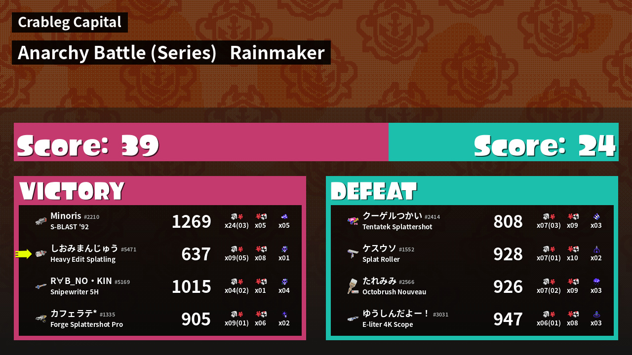 | Medals | #1 Score Booster #1 Splat Assister #1 Rainmaker Carrier | ||