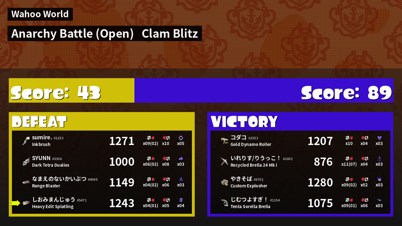 | Mode | Clam Blitz - Anarchy Battle (Open) | ||