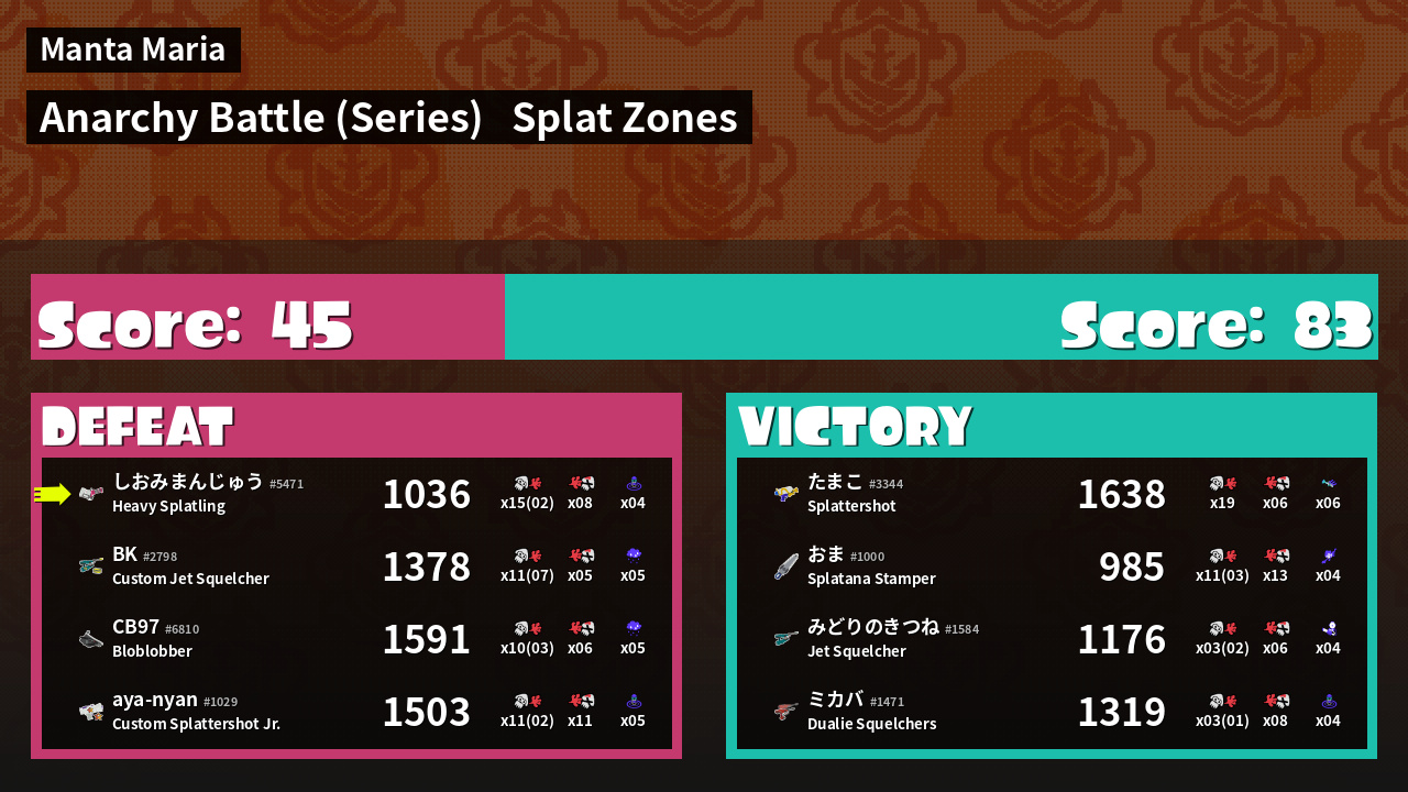 | Mode | Splat Zones - Anarchy Battle (Series) | ||