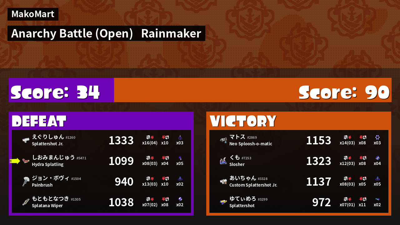 | Mode | Rainmaker - Anarchy Battle (Open) | ||