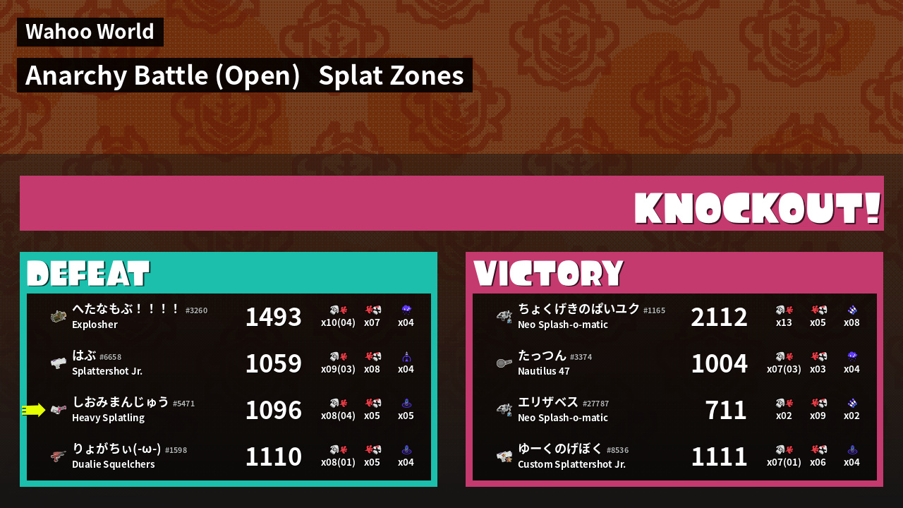 | Mode | Splat Zones - Anarchy Battle (Open) | ||