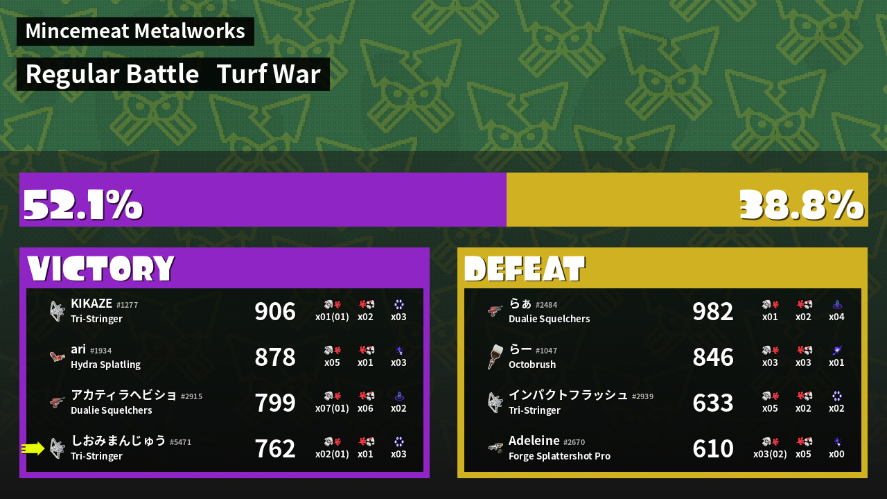 | Medals | #1 Super Jump Spot #1 Splat Assister #1 Killer Wail 5.1 User | ||