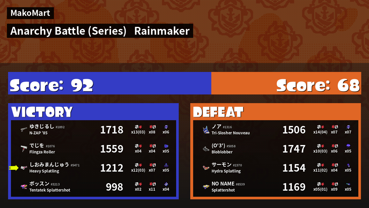 | Mode | Rainmaker - Anarchy Battle (Series) | ||